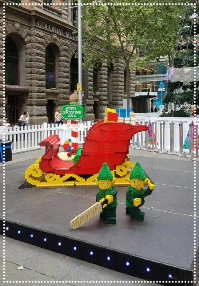 この間の日曜日に、クリスマス仕様の大型レゴが飾られると聞きつけて、早速 マーティンプレイスへ見物し来ました。
