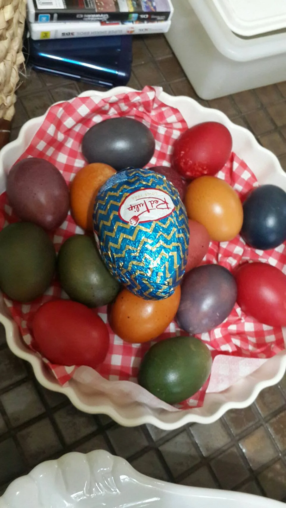写真は、ペイントされた卵たち。この色付けされた卵は、Easterの伝統の一つです。