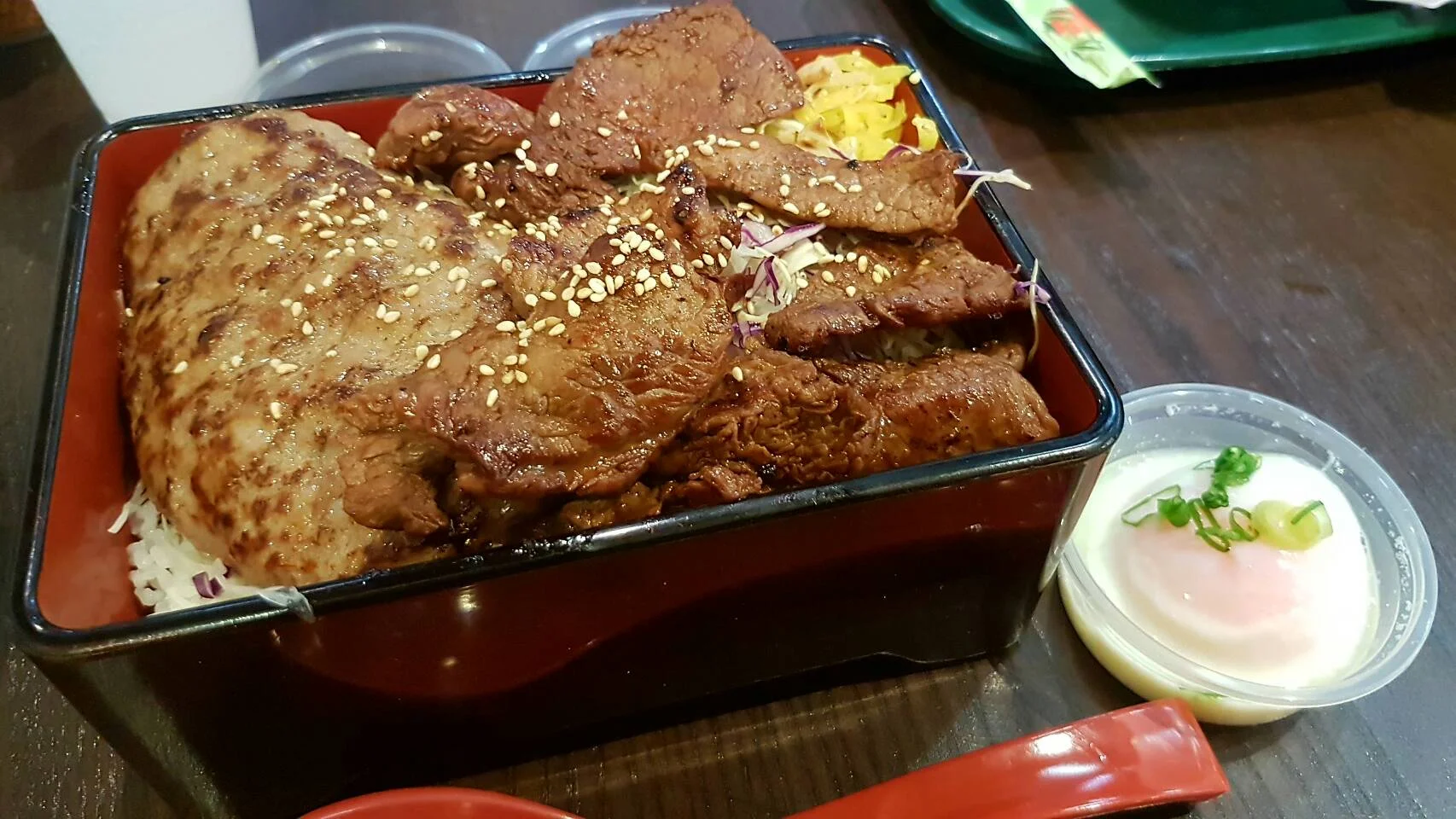 さ~て、しばらく前からむしょうにハンバーグが食べたい日が続いておりました。という事で、行ってきました。ハンバーグを食べたくなった時に決まっていくお店があるのです。今回は、腹ぺこだったので調子にのって焼肉も付けちゃいましたよっと('◇')ゞ お目当てのハンバーグは結構ボリュームがあってなかなかのもの。ハンバーグと温泉たまごってのもユニークな組み合わせだが、うまいのでよしっ!